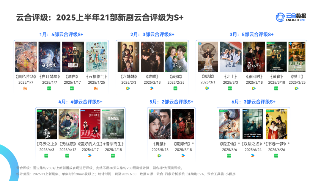 仅看上半年,云合数据将21部新剧被评为S+,爱奇艺驾御10部,简直占据半壁山河,其中《漂白》以热播期集均、集均V30双破5000万,集均V7破3000万,位居三榜第一。